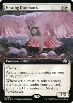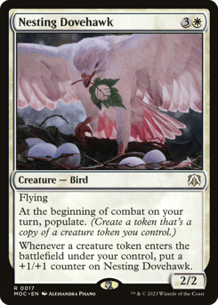 Flying At the beginning of combat on your turn, populate. (Create a token that's a copy of a creature token you control.) Whenever a creature token you control enters, put a +1/+1 counter on this creature.