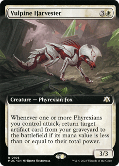 Whenever one or more Phyrexians you control attack, return target artifact card from your graveyard to the battlefield if its mana value is less than or equal to their total power.