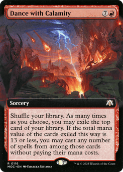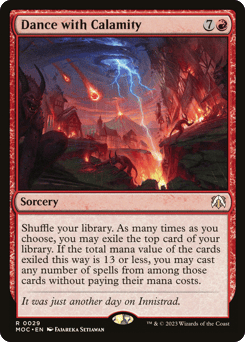 Shuffle your library. As many times as you choose, you may exile the top card of your library. If the total mana value of the cards exiled this way is 13 or less, you may cast any number of spells from among those cards without paying their mana costs.