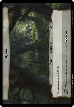 When you planeswalk to Grove of the Dreampods and at the beginning of your upkeep, reveal cards from the top of your library until you reveal a creature card. Put that card onto the battlefield and the rest on the bottom of your library in a random order. Whenever chaos ensues, return target creature card from your graveyard to the battlefield.