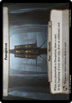 When you planeswalk to Panopticon, draw a card. At the beginning of your draw step, draw an additional card. Whenever chaos ensues, draw a card.