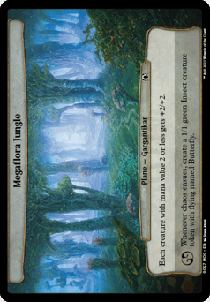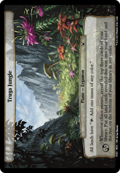 Whenever a player taps a land for mana, that player adds one mana of any type that land produced. Whenever chaos ensues, reveal cards from the top of your planar deck until you reveal a plane card. Chaos ensues on that plane. Then put all cards revealed this way on the bottom of your planar deck in any order.