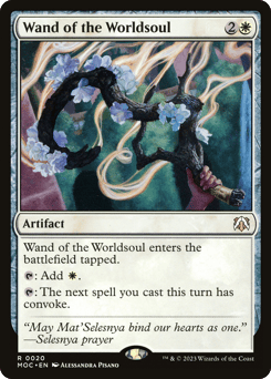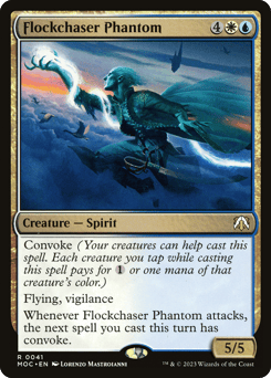 Convoke (Your creatures can help cast this spell. Each creature you tap while casting this spell pays for {1} or one mana of that creature's color.) Flying, vigilance Whenever this creature attacks, the next spell you cast this turn has convoke.