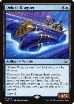 This Vehicle can't be blocked except by Vehicles. Whenever this Vehicle deals combat damage to a player, you may cast target instant or sorcery card from that player's graveyard without paying its mana cost. If that spell would be put into a graveyard, exile it instead. Crew 2