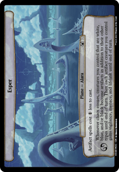 Artifact spells cost {1} less to cast. Whenever chaos ensues, creatures you control that are white, blue, and/or black become artifacts in addition to their other types until end of turn. Then each artifact creature you control gains vigilance, menace, and lifelink until end of turn.