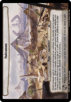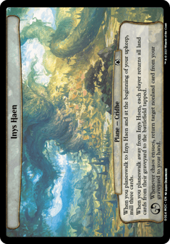 When you planeswalk to Inys Haen and at the beginning of your upkeep, mill three cards. When you planeswalk away from Inys Haen, each player returns all land cards from their graveyard to the battlefield tapped. Whenever chaos ensues, return target nonland card from your graveyard to your hand.