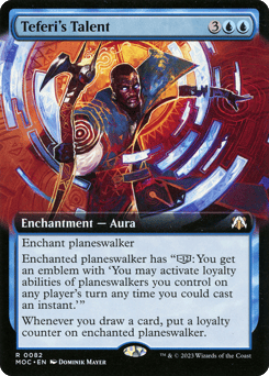 Enchant planeswalker Enchanted planeswalker has "[−12]: You get an emblem with 'You may activate loyalty abilities of planeswalkers you control on any player's turn any time you could cast an instant.'" Whenever you draw a card, put a loyalty counter on enchanted planeswalker.