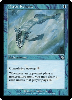 Cumulative upkeep {1} (At the beginning of your upkeep, put an age counter on this permanent, then sacrifice it unless you pay its upkeep cost for each age counter on it.) Whenever an opponent casts a noncreature spell, you may draw a card unless that player pays {4}.