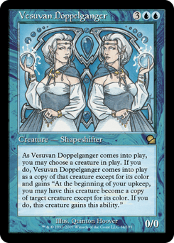 You may have this creature enter as a copy of any creature on the battlefield, except it doesn't copy that creature's color and it has "At the beginning of your upkeep, you may have this creature become a copy of target creature, except it doesn't copy that creature's color and it has this ability."