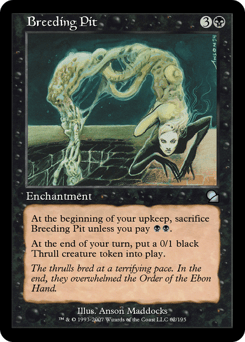 At the beginning of your upkeep, sacrifice this enchantment unless you pay {B}{B}. At the beginning of your end step, create a 0/1 black Thrull creature token.