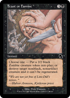 Choose one — • Create a 2/2 black Zombie creature token. • Destroy target nonartifact, nonblack creature. It can't be regenerated.