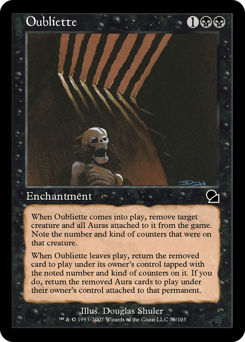 Enchant creature card in a graveyard When this Aura enters, if it's on the battlefield, it loses "enchant creature card in a graveyard" and gains "enchant creature put onto the battlefield with this Aura." Return enchanted creature card to the battlefield under your control and attach this Aura to it. When this Aura leaves the battlefield, that creature's controller sacrifices it. Enchanted creature gets -1/-0.