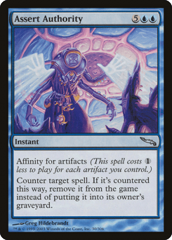 Affinity for artifacts (This spell costs {1} less to cast for each artifact you control.) Counter target spell. If that spell is countered this way, exile it instead of putting it into its owner's graveyard.