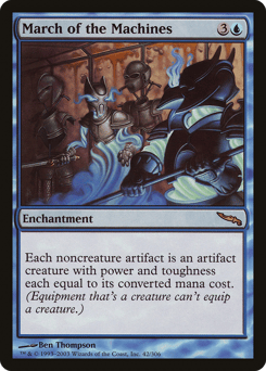 Each noncreature artifact is an artifact creature with power and toughness each equal to its mana value. (Equipment that's a creature can't equip a creature.)