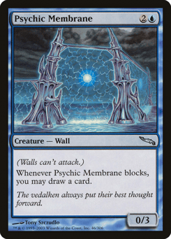 Defender (This creature can't attack.) Whenever this creature blocks, you may draw a card.