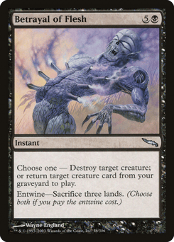 Choose one — • Destroy target creature. • Return target creature card from your graveyard to the battlefield. Entwine—Sacrifice three lands. (Choose both if you pay the entwine cost.)