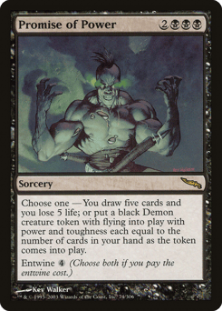 Choose one — • You draw five cards and you lose 5 life. • Create an X/X black Demon creature token with flying, where X is the number of cards in your hand. Entwine {4} (Choose both if you pay the entwine cost.)