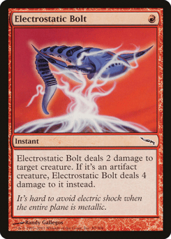 Electrostatic Bolt deals 2 damage to target creature. If it's an artifact creature, Electrostatic Bolt deals 4 damage to it instead.