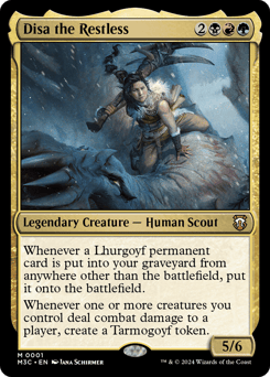 Whenever a Lhurgoyf permanent card is put into your graveyard from anywhere other than the battlefield, put it onto the battlefield. Whenever one or more creatures you control deal combat damage to a player, create a Tarmogoyf token.