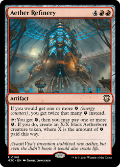 If you would get one or more {E} (energy counters), you get twice that many {E} instead. {T}: You get {E}, then you may pay one or more {E}. If you do, create an X/X black Aetherborn creature token, where X is the amount of {E} paid this way.