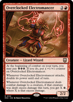 At the beginning of combat on your turn, you may pay {E}{E}{E}. If you do, put a +1/+1 counter on this creature. Whenever this creature attacks, double its power until end of turn. Whenever this creature deals combat damage to a creature, if that creature was dealt excess damage this turn, you get X {E}, where X is that excess damage.