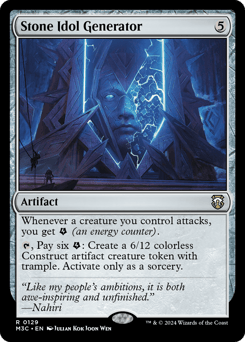 Whenever a creature you control attacks, you get {E} (an energy counter). {T}, Pay six {E}: Create a 6/12 colorless Construct artifact creature token with trample. Activate only as a sorcery.