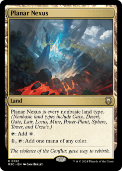 This land is every nonbasic land type. (Nonbasic land types include Cave, Desert, Gate, Lair, Locus, Mine, Power-Plant, Sphere, Tower, and Urza's.) {T}: Add {C}. {1}, {T}: Add one mana of any color.