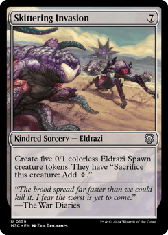 Devoid (This card has no color.) Myriad When this creature leaves the battlefield, create a 0/1 colorless Eldrazi Spawn creature token with "Sacrifice this token: Add {C}."