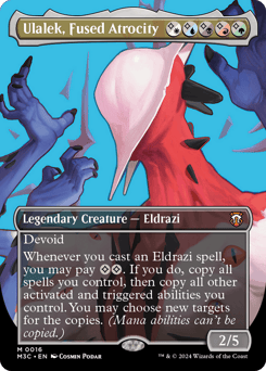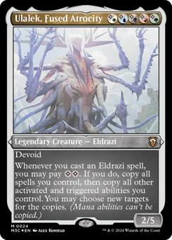 Devoid (This card has no color.) Whenever you cast an Eldrazi spell, you may pay {C}{C}. If you do, copy all spells you control, then copy all other activated and triggered abilities you control. You may choose new targets for the copies. (Mana abilities can't be copied.)