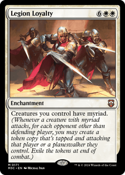 Creatures you control have myriad. (Whenever a creature with myriad attacks, for each opponent other than defending player, you may create a token copy that's tapped and attacking that player or a planeswalker they control. Exile the tokens at end of combat.)