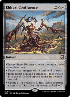 Choose three. You may choose the same mode more than once. • Target creature gets +3/-3 until end of turn. • Exile target nonland permanent, then return it to the battlefield tapped under its owner's control. • Create a 1/1 colorless Eldrazi Scion creature token with "Sacrifice this token: Add {C}."