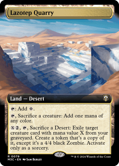{T}: Add {C}. {T}, Sacrifice a creature: Add one mana of any color. {X}{2}, {T}, Sacrifice a Desert: Exile target creature card with mana value X from your graveyard. Create a token that's a copy of it, except it's a 4/4 black Zombie. Activate only as a sorcery.