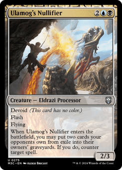 Devoid (This card has no color.) Flash Flying When this creature enters, you may put two cards your opponents own from exile into their owners' graveyards. If you do, counter target spell.