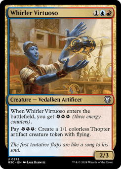 When this creature enters, you get {E}{E}{E} (three energy counters). Pay {E}{E}{E}: Create a 1/1 colorless Thopter artifact creature token with flying.