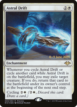 Whenever you cycle this card or cycle another card while this enchantment is on the battlefield, you may exile target creature. If you do, return that card to the battlefield under its owner's control at the beginning of the next end step. Cycling {2}{W} ({2}{W}, Discard this card: Draw a card.)