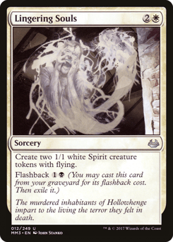 Create two 1/1 white Spirit creature tokens with flying. Flashback {1}{B} (You may cast this card from your graveyard for its flashback cost. Then exile it.)