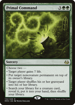 Search your library for up to four cards with different names and reveal them. Target opponent chooses two of those cards. Put the chosen cards into your graveyard and the rest into your hand. Then shuffle.