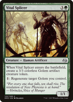 When this creature enters, create a 3/3 colorless Phyrexian Golem artifact creature token. Golem creatures you control have vigilance.