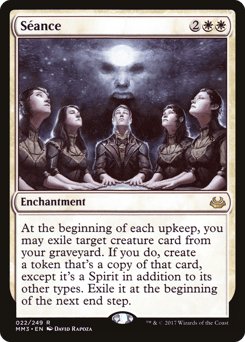 At the beginning of each upkeep, you may exile target creature card from your graveyard. If you do, create a token that's a copy of that card, except it's a Spirit in addition to its other types. Exile it at the beginning of the next end step.