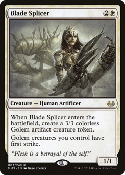 When this creature enters, create a 3/3 colorless Phyrexian Golem artifact creature token. Golems you control have first strike.