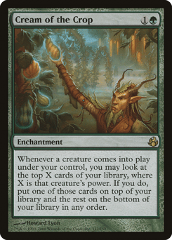 At the beginning of your upkeep, reveal the top card of your library. If it's a land card, put it into your graveyard and repeat this process. Whenever a land card is put into your graveyard from anywhere, put a +1/+1 counter on this creature.