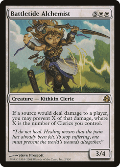 If a source would deal damage to a player, you may prevent X of that damage, where X is the number of Clerics you control.