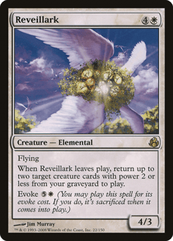 Flying When this creature leaves the battlefield, return up to two target creature cards with power 2 or less from your graveyard to the battlefield. Evoke {5}{W} (You may cast this spell for its evoke cost. If you do, it's sacrificed when it enters.)