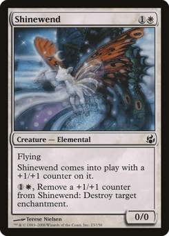 Flying This creature enters with a +1/+1 counter on it. {1}{W}, Remove a +1/+1 counter from this creature: Destroy target enchantment.