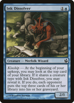 Kinship — At the beginning of your upkeep, you may look at the top card of your library. If it shares a creature type with this creature, you may reveal it. If you do, each opponent mills three cards.