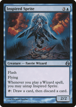 Flash Flying Whenever you cast a Wizard spell, you may untap this creature. {T}: Draw a card, then discard a card.