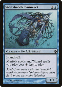 Islandwalk (This creature can't be blocked as long as defending player controls an Island.) Merfolk spells and Wizard spells you cast cost {1} less to cast.