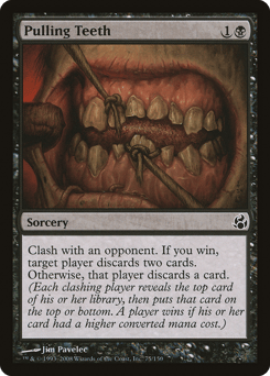 Clash with an opponent. If you win, target player discards two cards. Otherwise, that player discards a card. (Each clashing player reveals the top card of their library, then puts that card on their choice of the top or bottom. A player wins if their card had a greater mana value.)