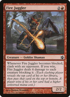Whenever this creature becomes blocked, clash with an opponent. If you win, this creature deals 4 damage to each creature blocking it. (Each clashing player reveals the top card of their library, then puts that card on their choice of the top or bottom. A player wins if their card had a greater mana value.)