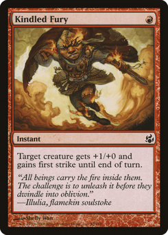 Target creature gets +1/+0 and gains first strike until end of turn. (It deals combat damage before creatures without first strike.)